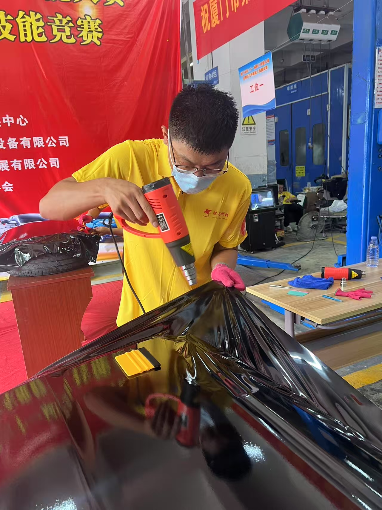 作为行业技术交流的重要平台,本次竞赛吸引了众多汽车维修领域的佼佼者参与。赛事以提升汽车贴膜技术水平为核心目标,通过理论与实践的双重考核,全面检验选手的专业能力。比赛现场,选手们专注投入,从膜材的精准裁剪到贴合、除泡等环节,每一步操作都展现出娴熟的技艺与精益求精的态度,将工匠精神融入指尖细节。经过理论知识初赛与实操技能决赛的激烈比拼,最终评选出一、二、三等奖及优胜奖,一批技术过硬的行业人才脱颖而出。