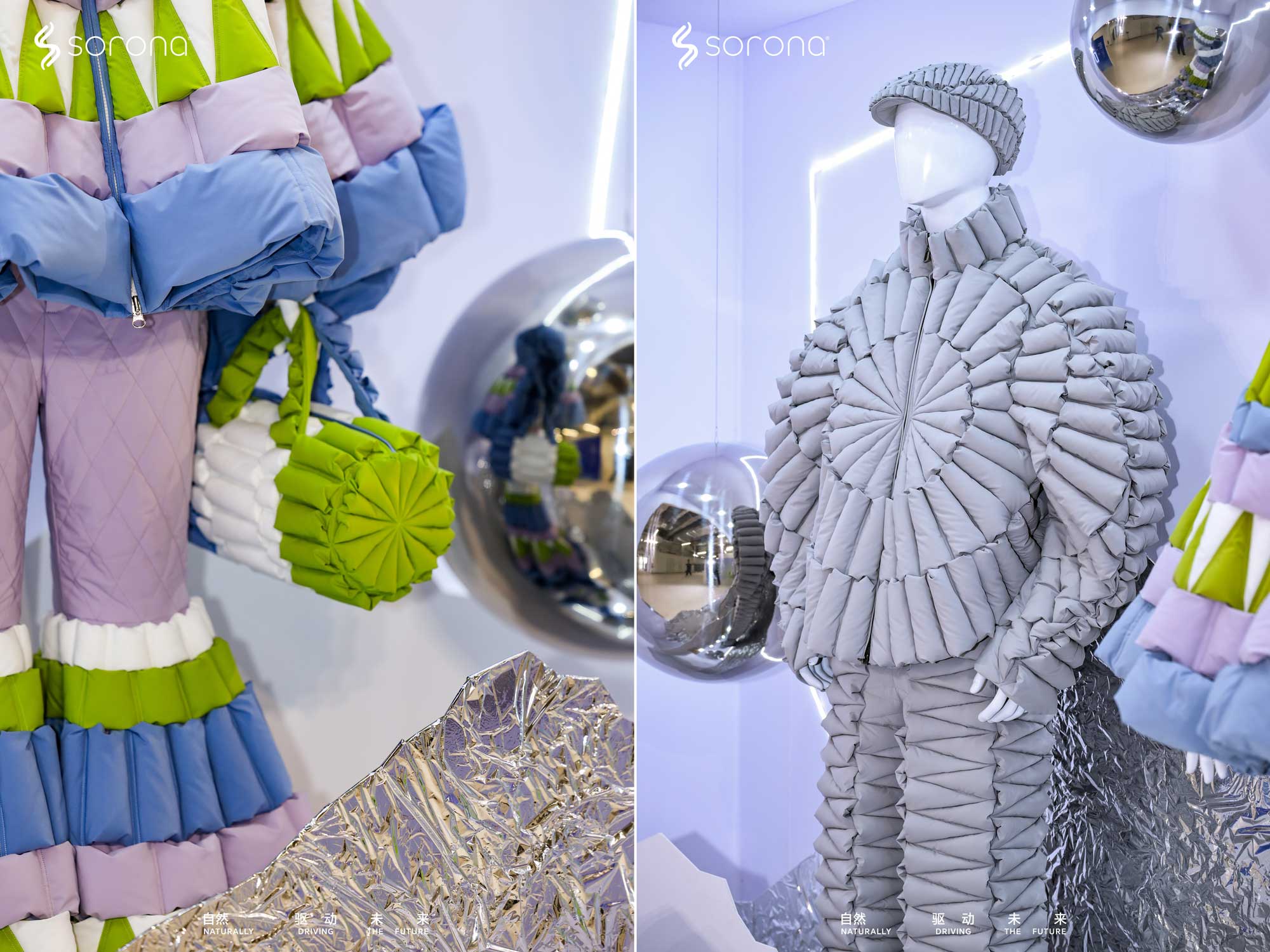 通过数学逻辑思维跨界时尚设计,传承中国传统工艺与文化,RAXXY以极高的视觉辨识度,创造了“维新时装”体系,在全球奢侈品羽绒服品牌赛道,走出了中国羽绒服品牌的全球“维新”之路。这一次,RAXXY与SORONA®生物基材料二度联手,以材料为始,通过展示空间、纪录片、圆桌论坛等多种形式,共同探索未来设计构想。