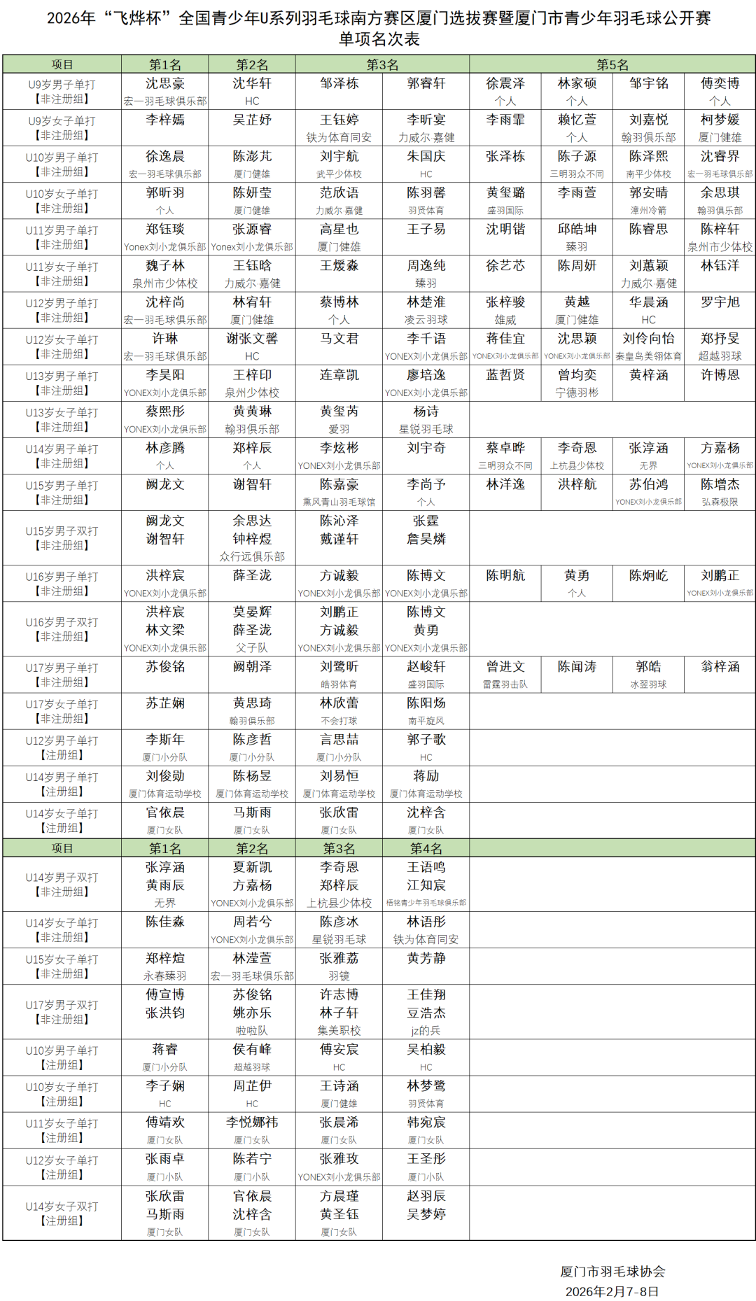 值得一提的是,主办单位厦门市羽毛球协会已明确将厦门市青少年羽毛球公开赛纳入每年计划内比赛,并固定安排在每年寒假放假后第一周周末举行。
