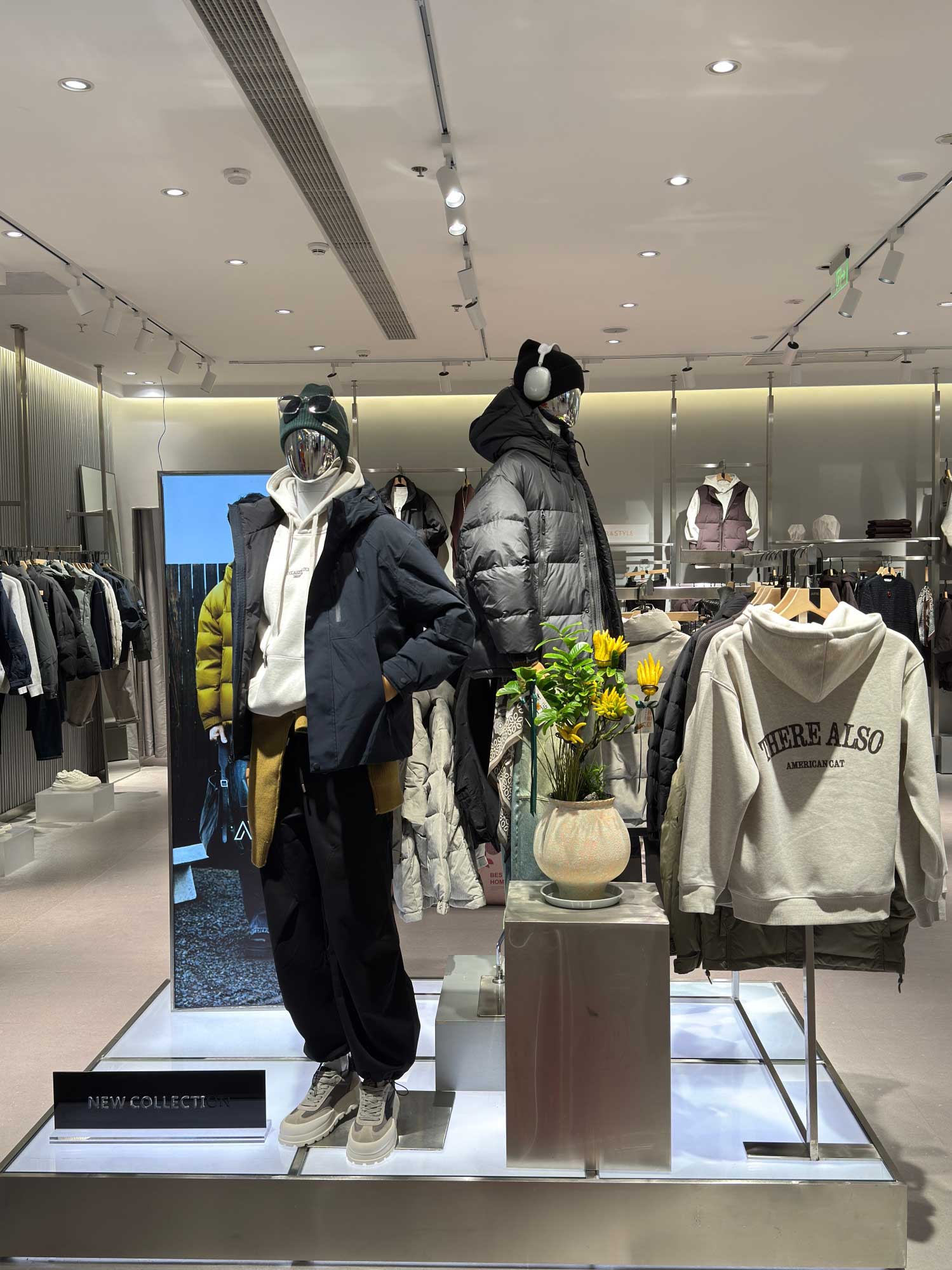 ATK男装昆山金鹰新店在设计上独具匠心,深度融合了现代工业风与精英美学理念。店铺空间开阔,以沉稳的高级灰与金属质感为主色调,辅以暖色灯光与艺术陈设,营造出兼具格调与舒适的购物环境。空间以简洁线条和自然材质为核心,动线自然延展,在沉静中探索功能与风格的共鸣。
